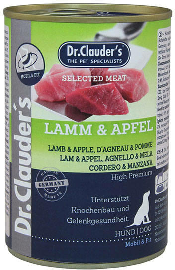 A Dr. Clauder’s Selected Meat Bárány-Alma további jellemzői: A hozzáadott kollagén hidrolizát támogatja a porcszövetek növekedését és hozzájárul az ízületek mobilitásának megőrzéséhez. ellenőrzött vitamin és ásványi anyag tartalma biztosítja a lehető legjobb tápanyag bevitelt. nem tartalmaz mesterséges aromákat és ízfokozókat, hozzáadott szójafehérjét vagy