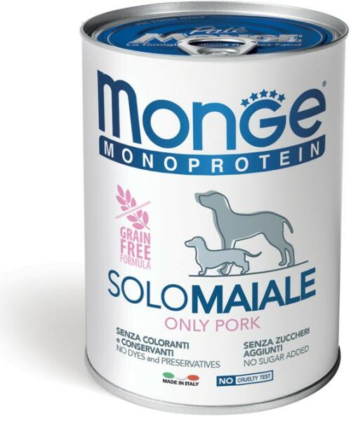 Teljes értékű állateledel felnőtt kutyák számára. A Paté egyetlen fehérjeforrással, a legjobb minőségű válogatott sertéshússal készült. Színezékek és tartósítószerek, hozáadott cukrok nélkül. Összetevők: friss sertés hús (a felhasznált hús 100%-a). Analitikai összetevők: nyersfehérje 8%, nyersrost 0,5%, nyerszsír 6,5%, nyershamu 1,7%, nedvességtartalom 80%. A