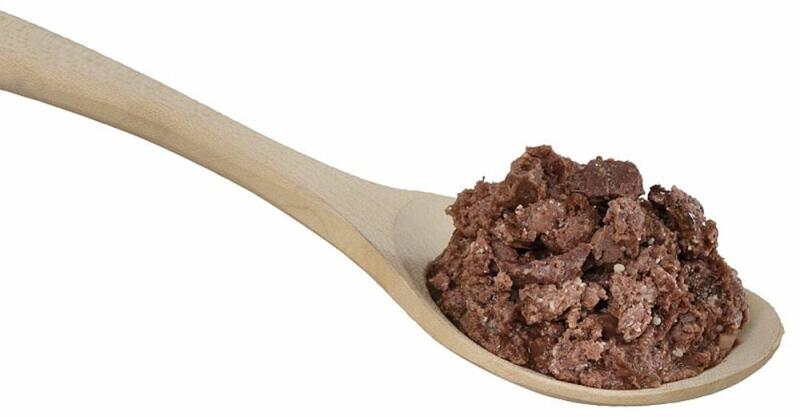RAFI pástétom marhahússal, kék és vörös áfonyával 800g Teljes értékű táplálék minden fajta felnőtt kutyának – marhahússal. Összetevők: hús és állati eredetű termékek 65% (marhahús 4%), gyümölcs (vörös áfonya 2%, kék áfonya 2%), ásványi anyagok, olajok és zsírok (lenmagolaj 0,2%), szárított kakukkfű 0,01%. Analitikai komponensek: nyersfehérje – 9%, nyers