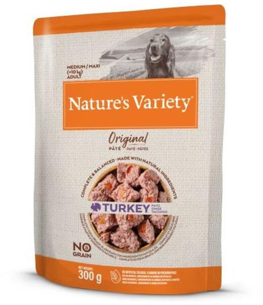 Nature's Variety Original kutyáknak pulykahússal 66% pulyka gabona mentes, ezért alkalmas érzékeny, allergiás és intoleráns kutyák számára kímélő gőzfőzés a tápanyagok és az egyedi íz megőrzése érdekében az étel zöldségeket is tartalmaz (paradicsom és sárgarépa) - rostforrás Mesterséges színezékektől, aromáktól és tartósítószerektől mentes öss zetevők :