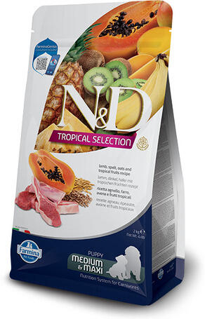 20kg Az N&D Tropical Selection az olasz Farmina gyártó legújabb tápsora, mely ősi gabonafélékkel és különféle trópusi gyümölcsökkel készült gondos fejlesztéssel, kutyáink és macskáink jólétéért. A tápban felhasznált trópusi gyümölcsök, mint például a papaya, mangó, kivi, ananász és banán, számos más táplálkozási előnyük mellett gazdagok természetes