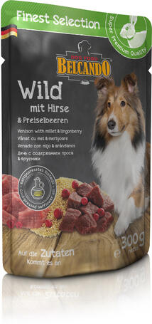 1.8kg A Belcando Finest Selection vadhús kölessel és vörös áfonyával egy kiváló minőségű tasakos nedves eledel kutyája számára. Szaftos, finom hozzávalókkal ízesített, kíméletesen főzött hússal. A hidegen sajtolt bogáncsolaj létfontosságú telítetlen zsírsavakat ad hozzá. Rendkívűl ízletes és jól hasznosítható, melyeknek köszönhetően kiválló az érzékeny