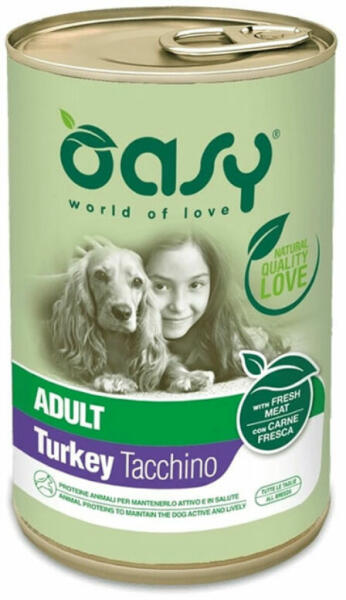 Az Oasy Dog Lifestage Adult Paté Turkey további jellemzői: teljes értékű nedves eledel kiváló minőségű állati fehérjék a friss hús maximális emészthetőséget, tápanyagbevitelt és ízt garantál nem tartalmaz mesterséges színezékeket, ízesítőt, tartósítószereket, szóját GMO mentes