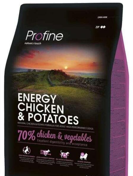 Profine Energy Chicken 12kg - csirkehússal nagy igénybevételű felnőtt kutyák részére Szuper prémium szárazeledel egyenesen Franciaországból! Adalékanyagok 1kg-ban:Beltartalom: nyersfehérje 33% nyers zsír 22% nyersrost 2,5% nyers hamu 7% nedvességtartalom 10% kalcium 1,6% foszfor 1,2% A vitamin 20000 NE D3-vitamin 1950 NE E-vitamin (α-tokoferol) 500 mg réz 18,8 mg cink 107 mg szel