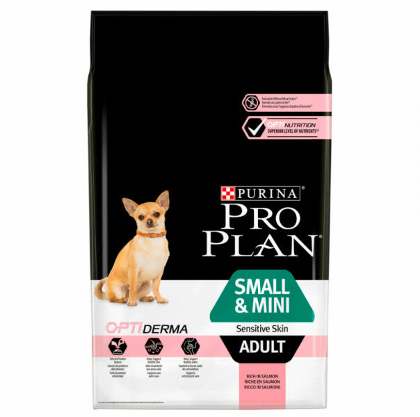 Pro Plan Optiderma teljes értékű állateledel kistestű, érzékeny bőrű felnőtt kutyák számára 7 kgLazac* (20%), Rizs* (18%), Kukoricaglutén-liszt*, Szárított lazacfehérje*, Kukorica*, Állati eredetű zsiradék, Szójaliszt*, Szárított cukorrépa-apríték*, Kukoricakeményítő, Ásványi anyagok, Cellulóz, Szójabab olaj, Kukoricadara, Hidrolizátum, Élesztő*, Tojáspor*, Hal