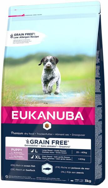 A zooplus. hu kínálatából: A kölyök- és fiatal kutyáknak első életévükben kiegyensúlyozott táplálékra van szükségük annak megalapozásához, hogy egészséges felnőtt kutyává fejlődjenek. Az Eukanuba Grain Free Puppy Large Breed lazac kifejezetten a nagyobb testű kölyökkutyák táplálkozási igényeinek kielégítésére került kifejlesztésre. Az Eukanuba Grain Free Pu