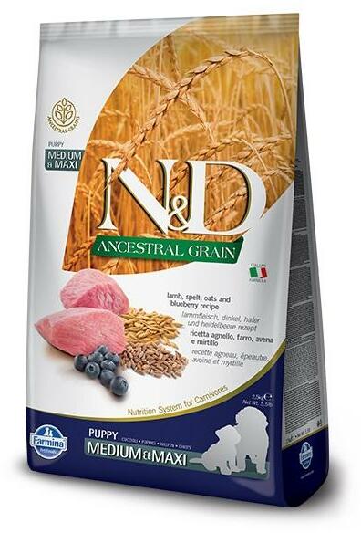 Tönköly, zab, bárány, áfonya. Teljes értékű eledel csökkentett gabonatartalommal, kölyökkutyák és vemhes vagy szoptató szuka kutyák részére, báránnyal és áfonyával. Összetétel: csontmentes friss bárány (20%), dehidratált bárányhús (20%), tönköly (10%), zab (10%), állati eredetű zsír, hidrolizált hal proteinek, friss hering, dehidratált hering, dehidratált egé