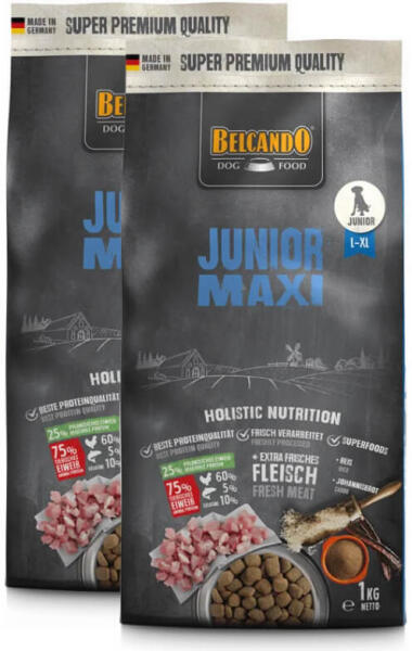 Junior Maxi 1kg Válogatott nyersanyagok és a fehérje, zsír és kalcium megfelelő kombinációja összhangban van a nagyobb kutyafajták lassabb növekedési ütemével. A könnyű baromfihúsokban és rizsben gazdag BELCANDO® JUNIOR MAXI különösen jól hasznosítható és igen nagy mértékben emészthető. A jánoskenyér csersavakkal és létfontosságú anyagokkal gondoskodik a jó em