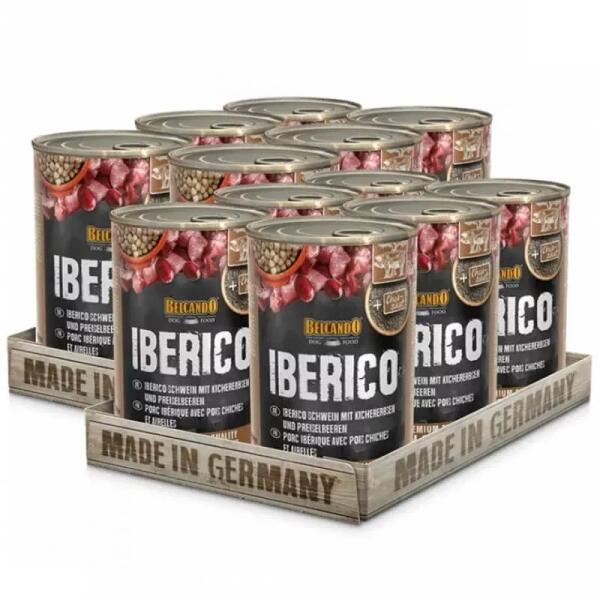Belcando konzerv Iberico sertéshús csicseriborsóval és vörös áfonyával Kiváló minőségű konzerves nedves eledel kutyája számára. Öt különféle húsféleséggel kapható, melyek természetesen ellenőrzött német gazdaságokból származnak. Nem használunk húspépet, hanem csak gondosan megfőzött darabos minőségi hús kerül a konzervekbe. Minden variációt válogatott hoz