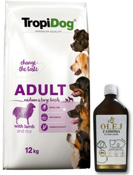 Tropidog Premium Adult Adult Medium & Large Breed Bárány és rizs 12kg - Termékleírás Prémium eledel ausztrál bárányhússal és rizzsel közepes fajtájú (12 hónapos kortól), valamint nagy és óriás fajtájú (15 hónapos kortól) felnőtt kutyák számára. Bárányhúsból és zöldségekből, gyümölcsökből és hínármoszatból (Ascophyllum nodosum) származó, jól emész