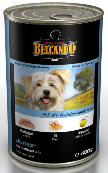 BELCANDO Junior Konzerv Színbaromfihús tojással Szuper prémium konzervKiváló minőségű, teljes értékű konzerv eledel kutyája számára. Amely nem tartalmaz húspépet, csak gondosan válogatott és megfőzött darabos minőségi hús kerül a konzervekbe. Telítetlen zsírsavakban gazdag értékes pórsáfránymagolajat is tartalmaz. Termék jelemzői: Made in Germany Garantáltan legj