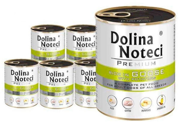 Dolina Noteci Prémium liba burgonyával 800g - Leírás Teljes értékű eledel libával és burgonyával minden fajta felnőtt kutyának, különösen értékes forrása a metionin és cisztein aminosavaknak. A libahús zsírja értékes forrása az n-6 többszörösen telítetlen zsírsavaknak. A liba és alapanyagai vas- és szelénforrást is jelentenek - ezek az ásványi anyagok biztosítj