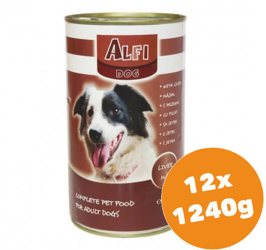 Alfi Dog Konzerv máj kutya nedvestáp - 415g Az Alfi Dog konzerv máj kutya nedvestáp teljes értékű étrendet biztosít a felnőtt, normál aktivitású kutyák részére 1 éves kortól. Az Alfi Dog konzerv máj kutya nedvestáp jellemzői Az Alfi Dog konzerv nedvestáp adagolásával a garantált minőségű nyersanyagok alkalmazásának köszönhetően kutyája egy kiválóan emészthető