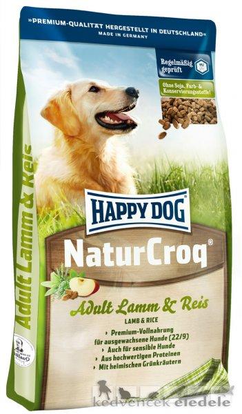 Happy Dog NaturCroq bárány & rizs Happy Dog NaturCroq száraz kutyatáp értékes báránnyal & rizzsel átlagos energiaigényű kutyáknak, mérsékelt zsírtartalomal. Javasolt ételérzékeny és világos szőrzetű kutyák számára is. A Happy Dog NaturCroq bárány & rizs kutyatáp jól bevált szárazeledel érzékeny kutyák esetében, alkalmazása különösen eredményesnek