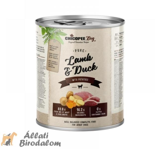 Konzerv eledel bárányhússal, kacsával és burgonyával felnőtt kutyák részére. Összetevők: 60% hús és állati eredetű származékok (26% bárány, 26% kacsa), 23.8% hús, 10% zöldségek (5% burgonya, 5% sárgarépa), 5% rizsliszt, 1% ásványi anyagok, 0.2% repceolaj. Analitikai összetevők: nedvesség: 80.0%, fehérje: 7.5%, zsírtartalom: 4.5%, nyershamu: 2.6%, nyersrost: 0.6%. Ad
