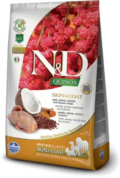 Az N&D Grain Free Grain Skin&Coat Fürj egy teljes értékű ízletes száraztáp kutyák számára. Gabonamentes formula. Támogatja az állatok szép és egészséges bőrét és szőrzetét. A fürjes, quinoás finom eledellel változatossá tehetjük a kiskedvencek étrendjét. A kifejezetten sovány, alacsony koleszterinű fürj hús aminosavakban és B vitaminokban gazdag. Könnyen e