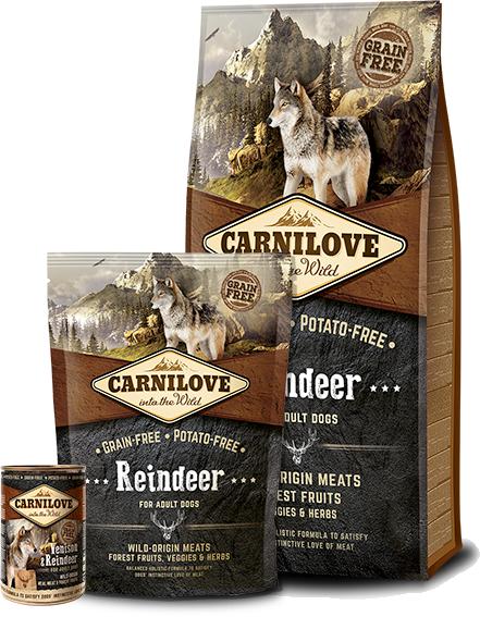 A CarniLove Adult Rénszarvas egy gabona és burgonyamentes, ínycsiklandó prémium szárazeledel felnőtt kutyák számára. Az rénszarvas húsos eledel tartalmazza a kutyusok számára elengedhetetlen aminosavakat. A táp 28% rénszarvashúst és 22% vaddisznóhúst tartalmaz. Tökéletes száraztáp felnőtt kutyák számára. A a rénszarvas hús egy igazán különleges fehérjeforrás. Kö