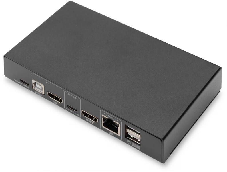 A DIGITUS® 2 portos KVM switch USB-C-vel és hálózati csatlakozással lehetővé teszi két 4K-képes számítógép vezérlését egyetlen USB-billentyűzetről és egérről. Egy gombnyomással kényelmesen válthat...