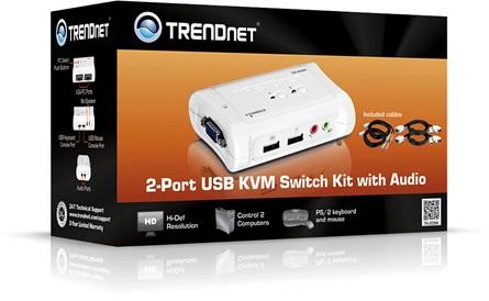 The 2-Port USB Audio KVM Switch lets you control multimedia PCs with just one keyboard, monitor, mouse, microphone, and a set of speakers. The KVM switch not only allows you to share your monitor, keyboard and mouse but you can also share microphone and speakers. With just a simple press of a button, this KVM switch eliminates the hassle of cable swapping and switching between 2 PCs. With it’s H