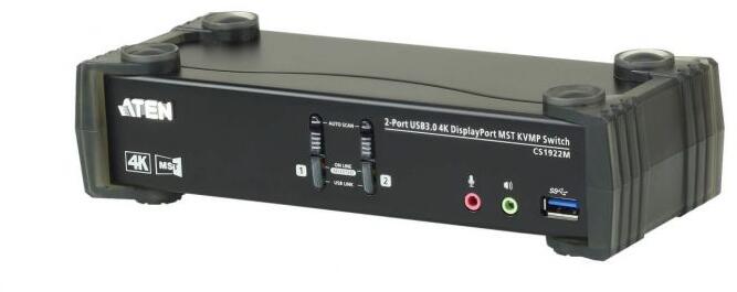 A beépített Multi-Stream Transport (MST) technológiát alkalmazó 2 portos, 4K DisplayPortos, USB3.0 csatlakozós CS1922M a világ legelsõ DisplayPort KVM switche, MST technológiával. Segítségével lehetõsége nyílik a felhasználóknak két konzol kijelzõ csatlakoztatására egyetlen DisplayPort 1.2 video forrásból, ami mellett biztosít extended desktop módot, splitter módot akár