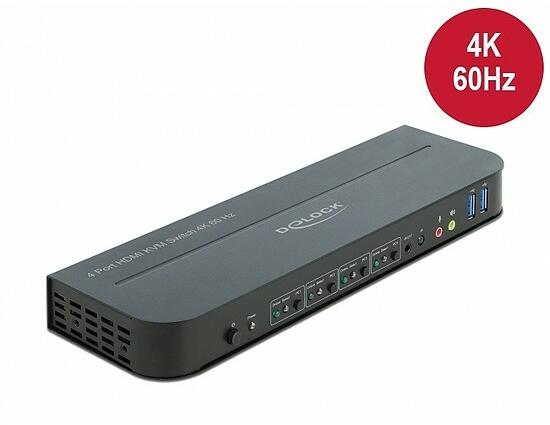 Ez a Delock KVM switch kényelmes megoldás négy HDMI kimenettel rendelkező számítógép egy HDMI monitorral való összekapcsolására. Perifériák Továbbá csatlakoztatható egér és billentyűzet a két USB 2.0 portra, és a két USB 3.0 porton keresztül egy merevlemez vagy USB memória kapcsolható. Flexibilis irányítás A számítógép aktiválható az egér mozgatásával, a klavi