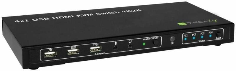 Techly 28702 4-portos HDMI/USB, 4x1, audio fekete KVM switch 4 HDMI/USB számítógép kezelése 1 billentyűzettel, monitorral és egérrel.