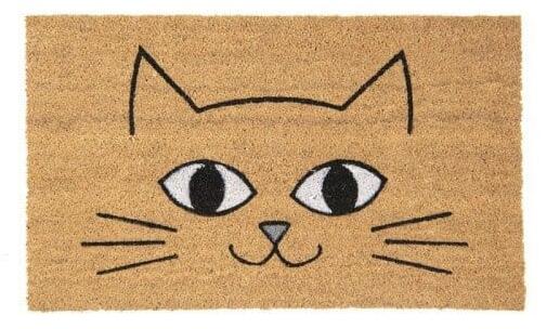 Különleges fekete macskafej mintájú lábtörlő. Anyaga: kókuszrost, gumi. Cicás lábtörlő mérete: 75x1x45 cm.