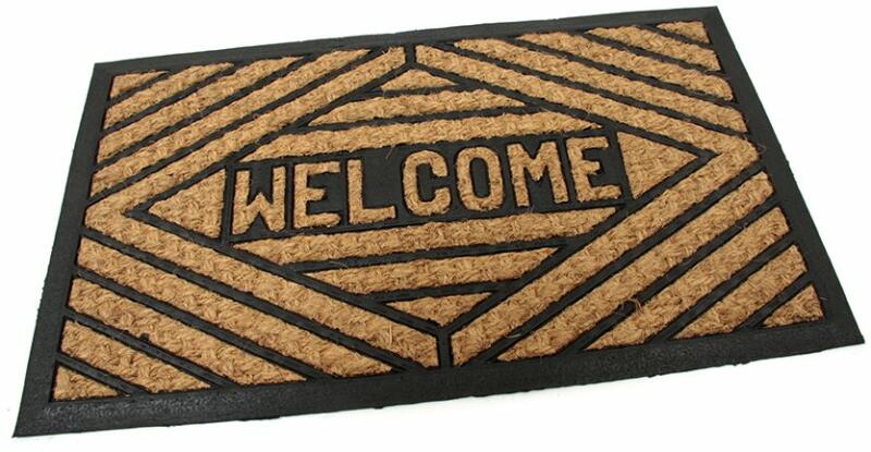 Az üdvözlőszőnyeg részleteKókuszos tisztítószőnyeg Welcome 45 × 75 × 0,8 cm Egy kókuszszálas gumiszőnyeg gondoskodik a cipők megtisztításáról a finomabb szennyeződésektől, például sár- vagy hómaradványoktól. A kókusz felülete kellemes ránézésre, és segít részben kiszáradni a cipőt. lakás vagy iroda bejáratára alkalmas tartós és igénytelen anyag vonzó di