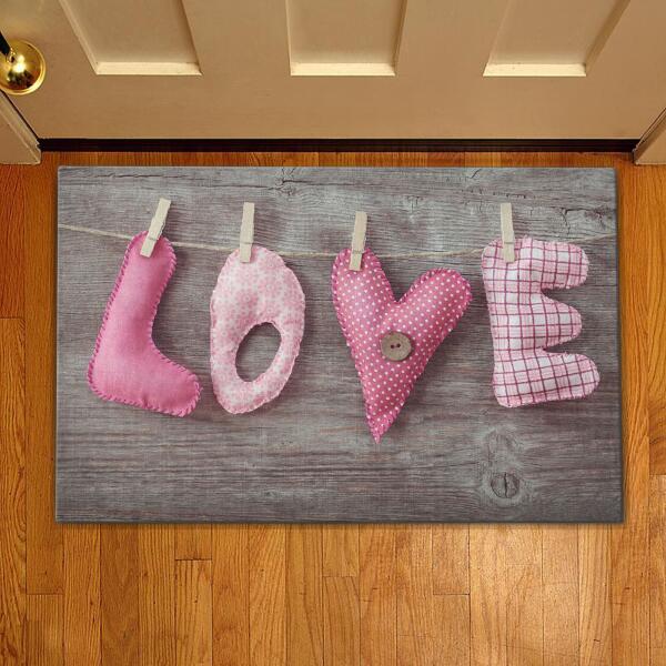 Bejárati szőnyeg Pink Love Oyo Home, 58x38 cm, 100% poliészter Utasítás: Mosás 30 fokon; Ne használjon fehérítőt; Finom mosás; Mosógéppel kompatibilis. Lapos fonalból készült.