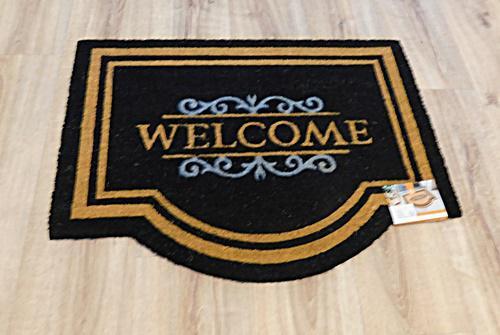 tömött, kókusz lábtörlő, gumi hátoldal, Coco Classic-Welcome 000 black 60*80 cm
