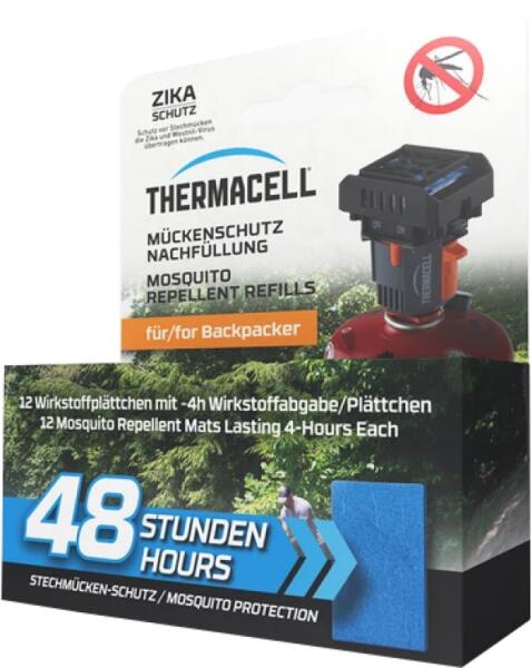 Thermacell utántöltõ szett USA fejlesztésű kézi s szúnyogriasztó t a katonaság részére fejlesztették ki. Használatával egy 21 m2 es védelmi burkot képeznek szúnyogok és egyéb vérszívókkal szemben. Nagyon hatékony 98% eredményt képez. A csomag a fent említett készülékhez biztosít töltetett. A csomag tartozéka 12 darab lapocska (összesen 48 órás védelem). Nagyon h