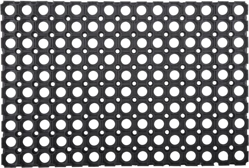 A gumikefe szőnyeg részleteGumikefe tisztítószőnyeg 90 × 180 × 1,2 cm Ez a praktikus gumiszőnyeg megtisztítja cipőjét a finomabb szennyeződésektől, például sártól vagy fűtől. A felület nagy része sűrűn borított kiemelkedésekkel, amelyek ellátják kefe funkcióját. alkalmas például az előszobába tartós és igénytelen anyag könnyű tisztítás