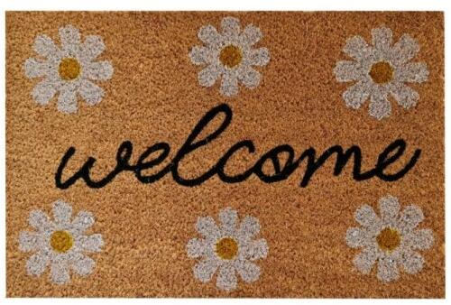 Koko mintás kókusz lábtörlő 40 x 60 cm, Welcome virág Gumi aljú kókusz lábtörlő, mely kiváló minőségű és a nyírt kókusz miatt igen erőteljes dörzsölési hatású. Egyedi megjelenést biztosít, mely otthona dísze lehet.