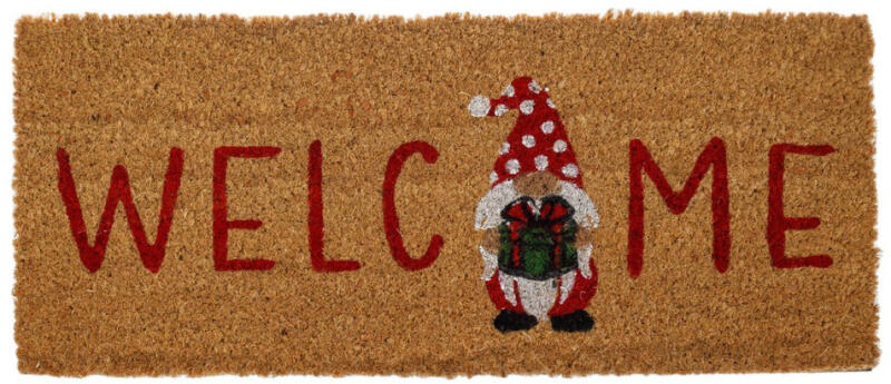 Karácsonyi Welcome feliratos lábtörlő manóval díszítve. Anyaga: kókuszrost, PVC Mérete: 60x25 cm