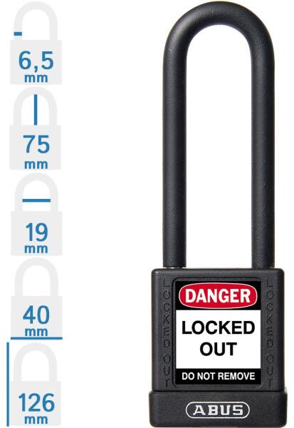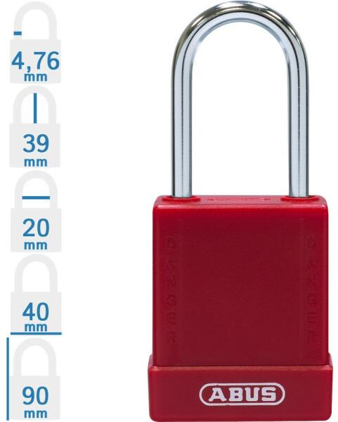 ABUS 76IB/40 LOTO munkavédelmi kizáró lakat (méret: lásd a képen): speciális ötvözetű Abus lakat, rozsdamentes acél kengyellel, kétoldali golyós reteszeléssel. Az ABUS 76IB/40 LOTO munkavédelmi kizáró lakat 10 különböző színben rendelhető! Minőségi ABUS zárbetét, 1 db kulcs/lakat. A lakat test mélysége: 22 mm. Szigetelt, különösen hőálló – forró és elektromos