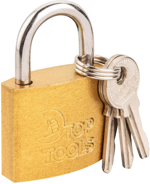 A Top Tools rézbevonatú öntöttvas lakat (kat. sz. 90U270) egy erős és tartós lakat, amelynek testje 30 mm széles és rézzel bevont öntöttvasból készült. A réz bevonat segítségével ellenállóbbá válik a korrózióval és a károsodással szemben, így hosszú távon is megbízható védelmet nyújt. A lakatot három kulccsal szállítják, így több kulcs is rendelkezésre ál