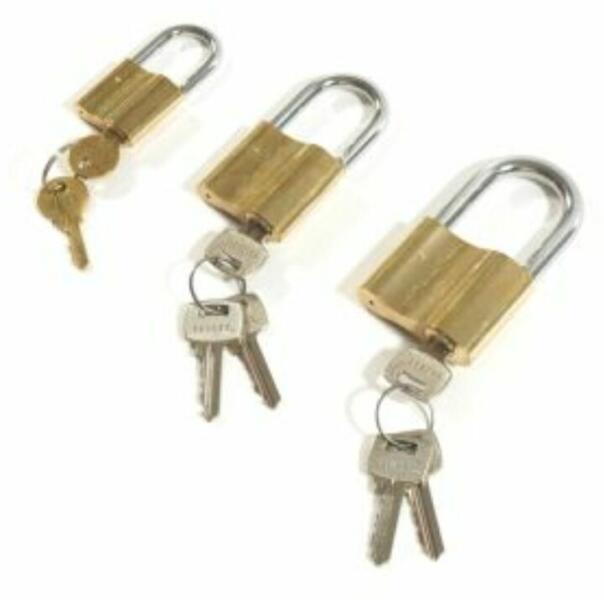 erős sárgaréz lakattestcilinderzár, kettő darab kulccsaledzett acél kengyelkétoldali reteszeléssel