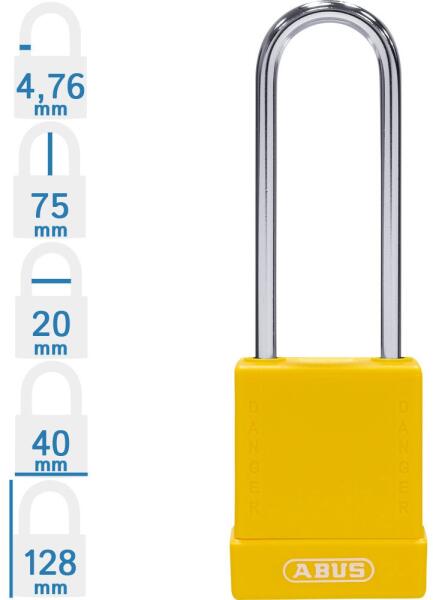 ABUS 76IB/40HB75 LOTO munkavédelmi kizáró lakat (méret: lásd a képen): speciális ötvözetű Abus lakat, rozsdamentes acél kengyellel, kétoldali golyós reteszeléssel. Az ABUS 76IB/40HB75 LOTO munkavédelmi kizáró lakat 10 különböző színben rendelhető! Minőségi ABUS zárbetét, 1 db kulcs/lakat. A lakat test mélysége: 22 mm. Szigetelt, különösen hőálló – forró és el