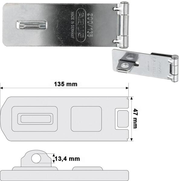 Abus 200/135 lakatpánt. Általános védelmet nyújtó lakatpánt, biztonsági szint: 2/10. Súly: 199g. A németországi Abus által képviselt minőség és biztonság minden zár, lakat, zárbetét termékben megjelenik 1924 óta napjainkig, ezáltal Ön a megvásárolt Abus termékkel egy minőségi terméket tarthat a kezében. ABUS: A biztonság szinonimája. Az ABUS márka a mechanikus és