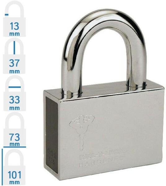 Mul-T-Lock C-13 biztonsági lakat edzett bóracél kengyellel: pontfuratos kulcs, biztonsági zárbetét. Mul-T-Lock MTL600 (Interactive+) zárbetét. Védett kulcs profil, kulcsmásolás kizárólag a zárbetéthez tartozó kódkártyával. Kulcsok száma: 3 db. Méret: lásd a képen. A MUL-T-LOCK Ltd-t 1973-ban alapította két fiatal vállalkozó Avraham Bachri és Moshe Dolev, az izraeli Yavn