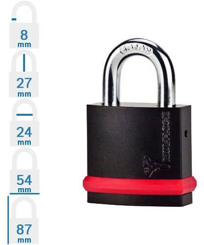 Mul-T-Lock NE8G acél biztonsági lakat edzett bóracél kengyellel: pontfuratos kulcs, csapos zárszerkezet. Mul-T-Lock 7x7 zárbetét. Méret: lásd a képen. Azonos zárlatú, egységkulcsos lakatok, melyek tetszőleges számban rendelhetők, azonos kulccsal működően. Lakat test mélység: 25 mm. Az alapértelmezett kulcsok száma: 3 db, a rendelt lakatok számától függetlenül! Tehát, h