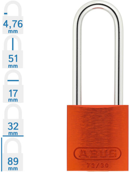 ABUS 72IB/30HB50 LOTO munkavédelmi kizáró lakat (méret, adatok: lásd a képen): speciális ötvözetű Abus lakat kétoldali golyós reteszeléssel. Rozsdamentes acél kengyel, 16 mm-es lakat test mélység. Az ABUS 72IB/30HB50 LOTO munkavédelmi kizáró lakat 8 különböző színben rendelhető! Minőségi ABUS zárszerkezet, 2 db kulcs. Azonos zárlatú, egykulcsos lakatok, mely tetszőle
