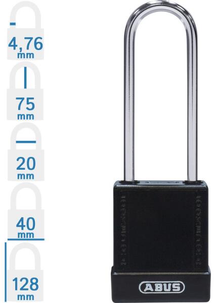 ABUS 76IB/40HB75 LOTO munkavédelmi kizáró lakat (méret: lásd a képen): speciális ötvözetű Abus lakat, rozsdamentes acél kengyellel, kétoldali golyós reteszeléssel. Az ABUS 76IB/40HB75 LOTO munkavédelmi kizáró lakat 10 különböző színben rendelhető! Minőségi ABUS zárbetét, 1 db kulcs/lakat. A lakat test mélysége: 22 mm. Szigetelt, különösen hőálló – forró és el