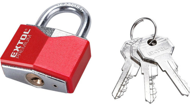 EXTOL PREMIUM lakat, vas, rombusz alakú, műanyag borítás, 3db kulcs; 40mm, edzett acél kengyel, szárátmérő: 6,3 mm Technikai adatok Méret 40 mm Típus 3 kulcsos