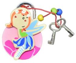 Kis kulccsal zárható lakat aranyos virágfüzért viselő tündér mintával, ahogy egy virágon éppen pihen. A lakathoz 2 kulcs tartozék ami egy kis gyöngyökkel rakott madzagon van. A lakat játék funkciót tölt be legfőképpen, amivel be tudja zárni a gyerek valamelyik kis dobozát, vagy egy kis kincsesládát, de kreatív kiegészítőként is nagyszerűen funkcionál.