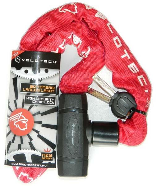 LÁNCOS LAKAT Kulcsos zár 8/8 mm vastag és 900 mm hosszú. Biztonsági zárbetét. Kerékpár lezáró titán-acél ötvözet. Szín: fekete gyöngyvászon borítással. Trínity logóval.