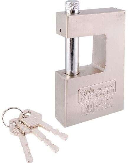Az univerzális garázskapu zár 71 mm átmérőjű tömör acél lakattal rendelkezik, rejtett kengyellel. 6 bukóbetét. Tartós, edzett acél szerkezet.