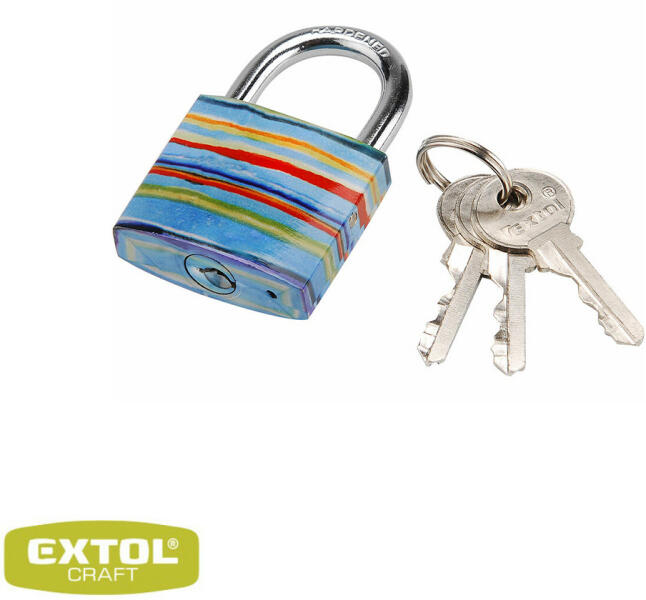 Biztonsági vas lakat, színes Edzett acél csap Extol Craft biztonsági vas lakat edzett acél csappal. Színes festéssel. Kulcs használata nélkül, kattintással zárható.