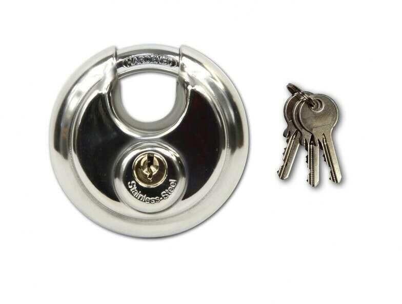 kulcsos időjárásálló diszkoszlakat cilinderzárral, kettő darab kulccsal anyaga rozsdamentes acél edzett acél kengyel időjárás elleni védelem zártakaró sapka