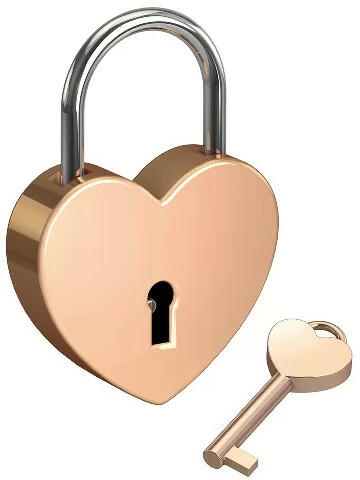 Alumínium alapanyagú szív alakú szerelemlekat rozé arany színben 1 db kulccsal. A rozé arany festésnek köszönhetően a felülete gravírozható.